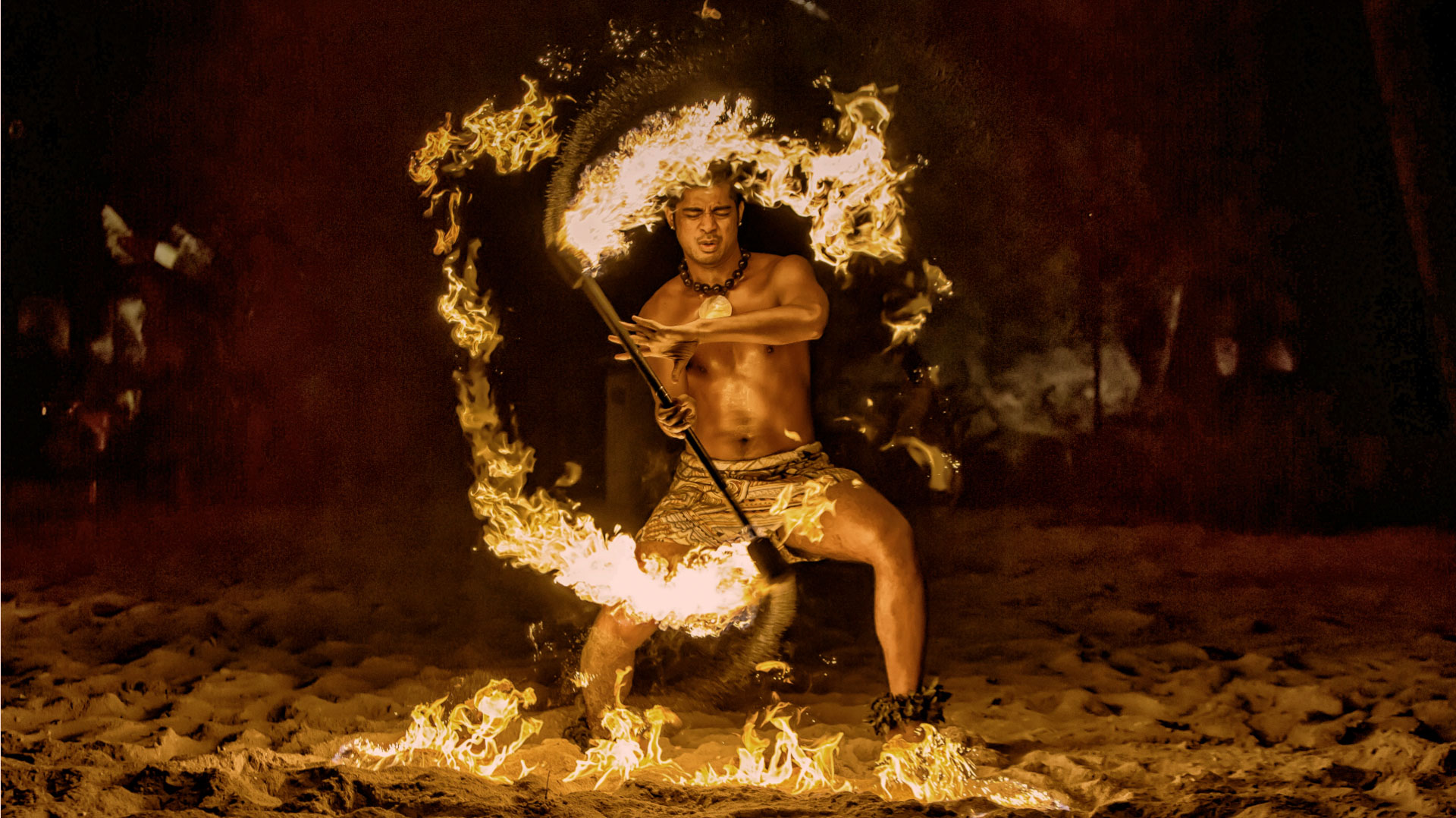 迫力のあるファイヤーダンス、ポリネシアンショーも目の前で鑑賞できます。