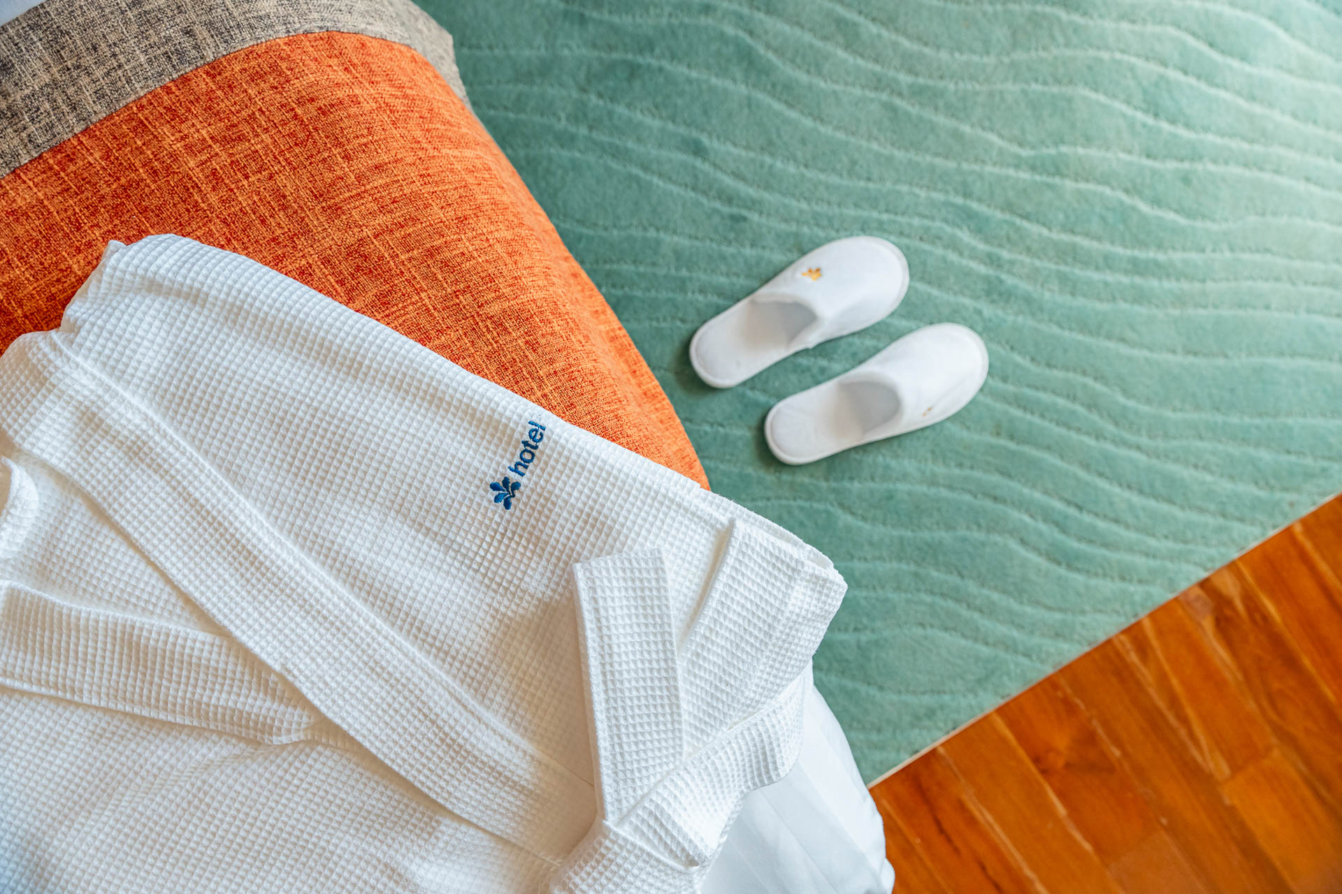 お水用のカラフェ(ガラス瓶)やカップを客室にご用意しておりますので、滞在中何度でもご自由にご利用くださいませ。