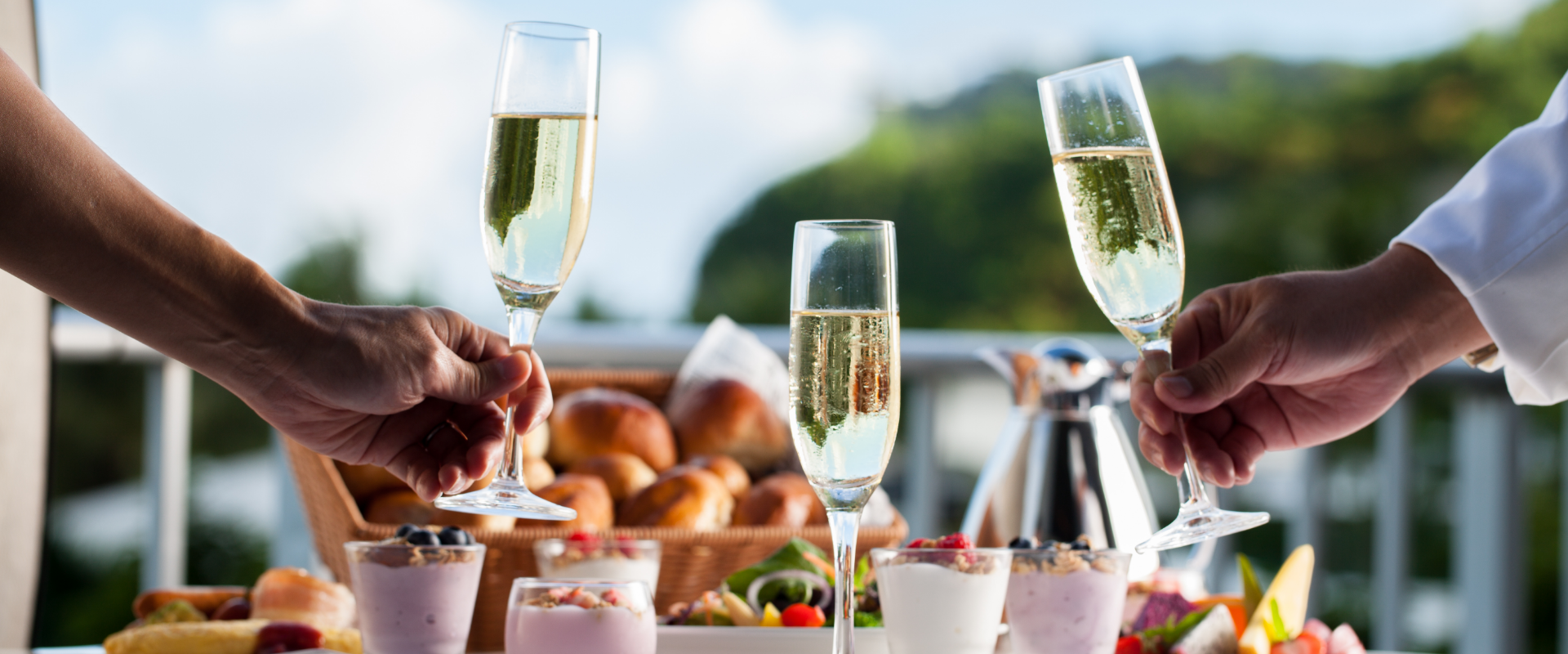 ディナー前のカクテルタイムには、ビール、ワイン、ハードリカーなどのアルコールやスモークサーモンやチーズなどのアペタイザーを各種ご用意しております。