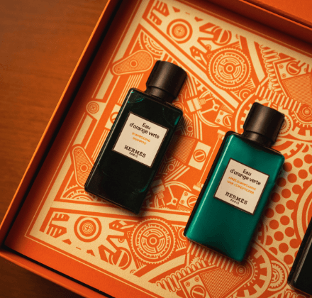 バスアメニティバスタイムもリラックスしてお過ごしいただけるよう、日本非売品の「オードランジュ ヴェルト」のエルメスのバスアメニティをご用意しております。