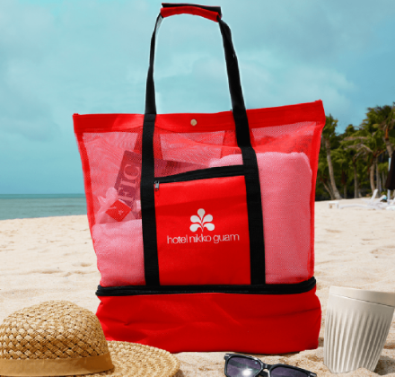 プレゼントホテルオリジナルのビーチバックをお部屋にご用意しております。プールやビーチやお出掛け時に是非ご利用ください。