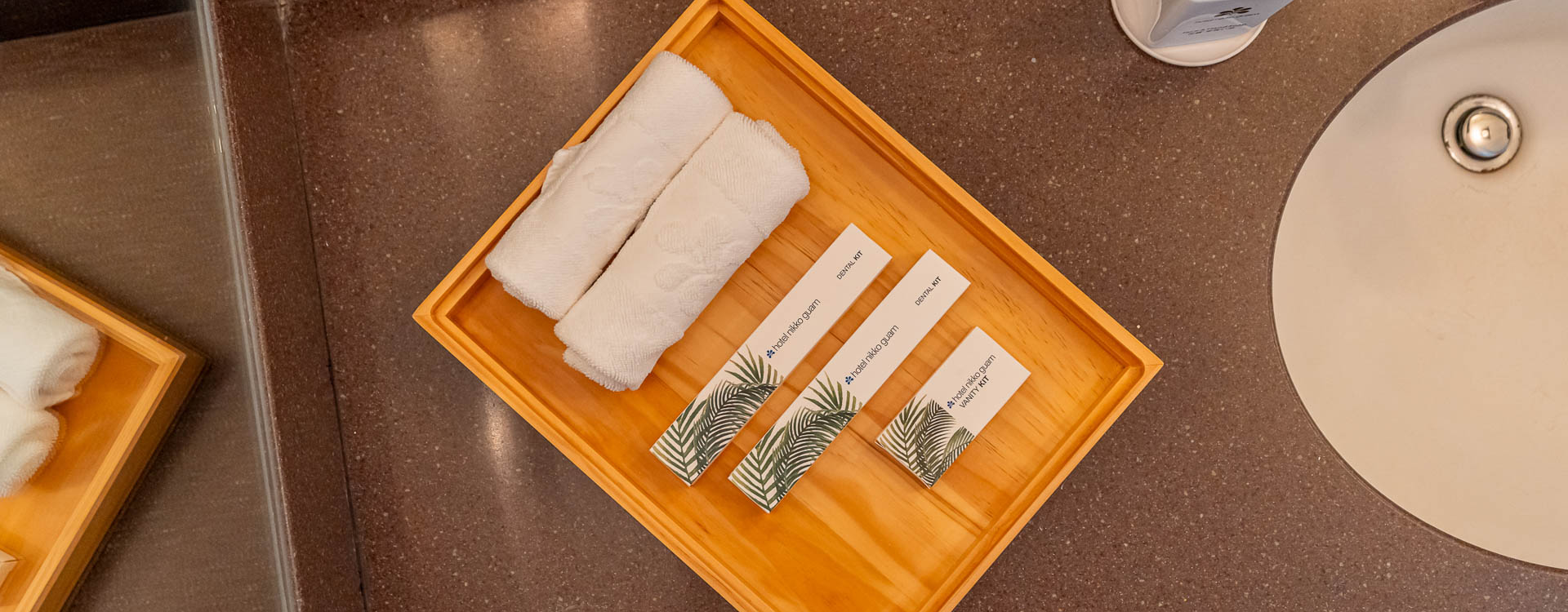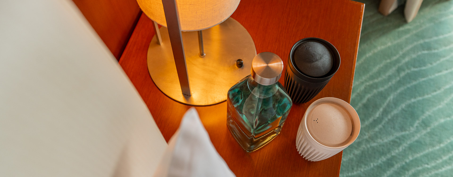 お水用のカラフェ(ガラス瓶)やカップを客室にご用意しておりますので、滞在中何度でもご自由にご利用くださいませ。